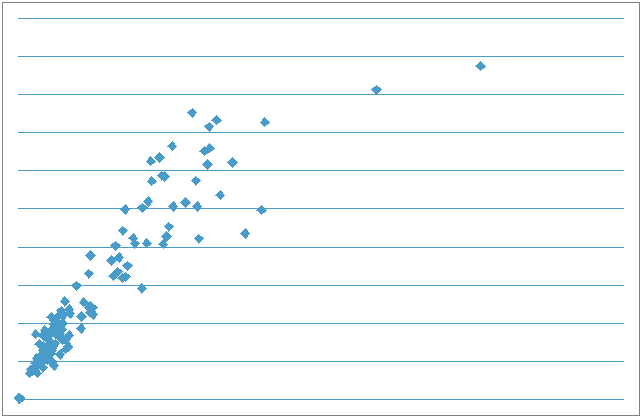 更进一步,将20y8-20x3年证券行业上市公司业务及管理费和营业收入进行线性回归分析,得到如下线性方程: y = 0.3017x + 400000000 R² = 0.8378 其中:y=管理费用 x=营业收入 可见管理费用和营业收入间存在良好的线性关系。