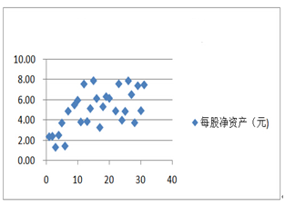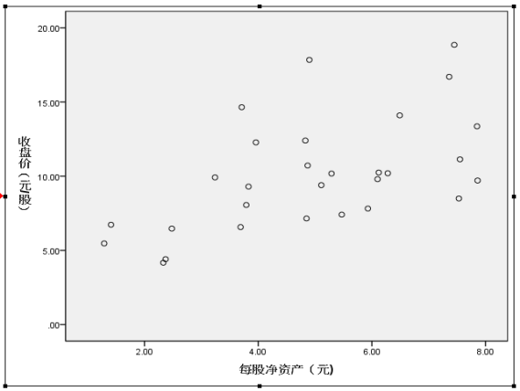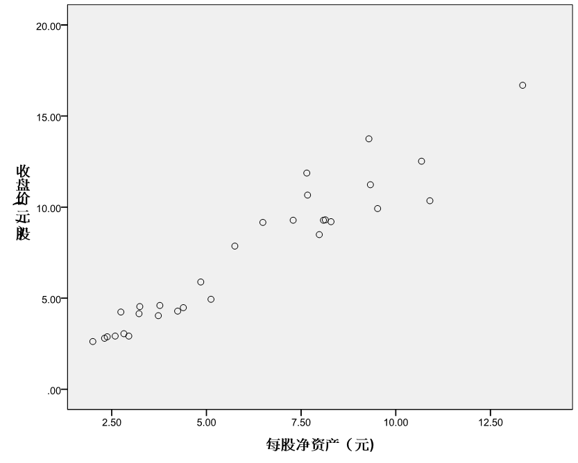 根据上述相关性分析结果,认为每股净资产与股价显著相关,因此,评估中选用每股净资产作为单因素模型的指标。 2.构建单因素模型 每股净资产对股价影响的相关性可以下图表示: